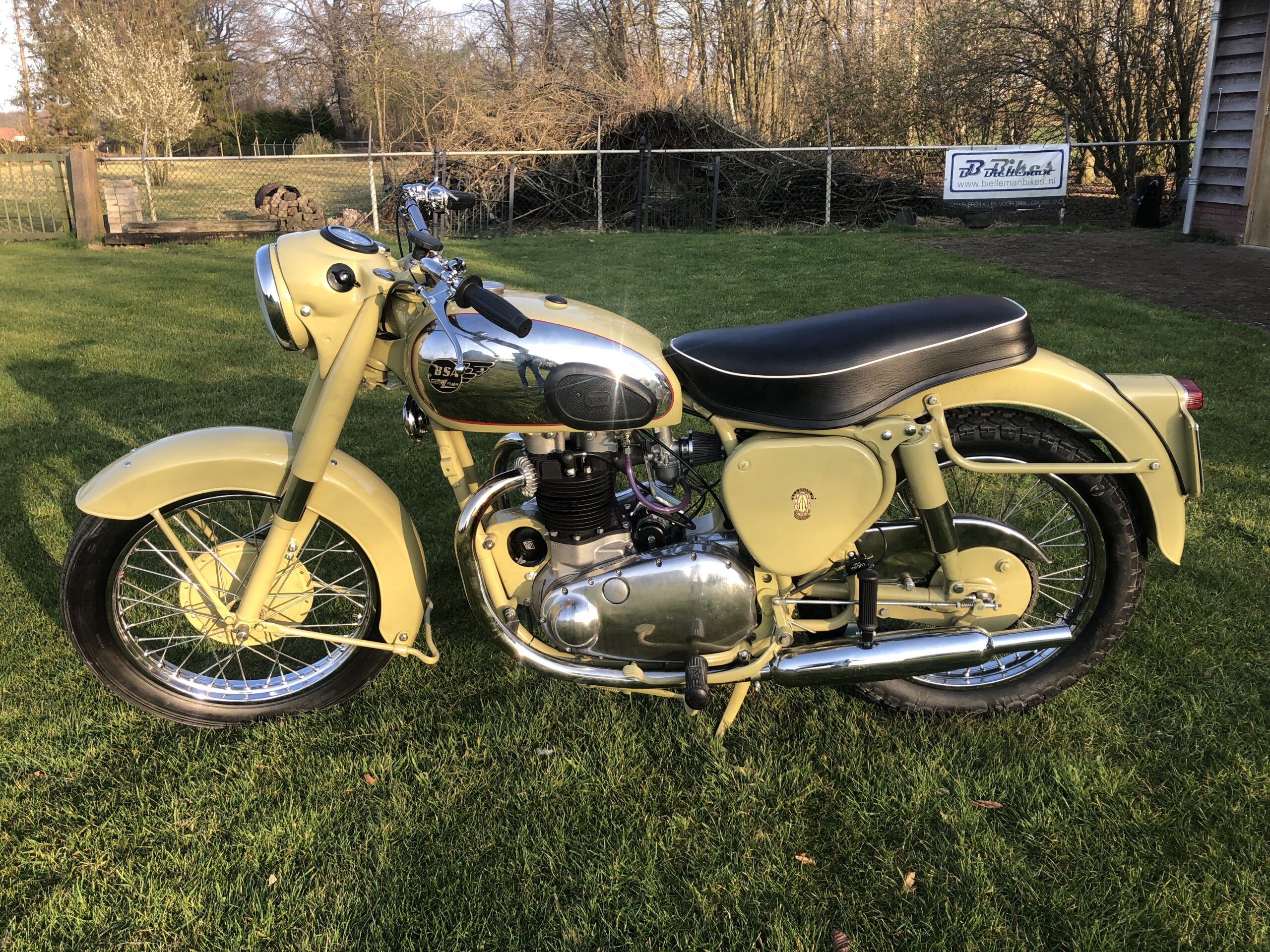 Een gestrand project wat duidelijk ooit een echte Golden Flash was geweest. Nu is deze kleur moeilijk correct te achterhalen, dus kwamen we deze keer op iets oker kleurig uit, het hoeft tenslotte niet altijd zwart te zijn. In dit geval zat er een motorblok bij wat volgens zeggen volledig gereviseerd zou zijn. Helaas, na de eerste 10 kilometer kwam zo ongeveer overal olie uit, dus ook dat is volledig gestript en gereviseerd. Inmiddels rijd deze A10 rond op Malta.